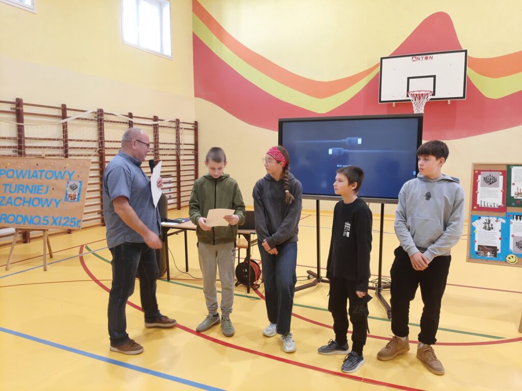 W dniu 5 listopada uczniowie naszej szkoły brali udział w powiatowych zawodach szachowych Szkolnego Związku Sportowego w Zagrodnie. Uczniowie rywalizowali w dwóch grupach wiekowych: młodszej klasy IV -VI i starszej klasy VII -VIII. W zwodach uczestniczyli uczniowie z sześciu szkół. Nasi zawodnicy walczyli dzielnie, odnosząc indywidualne zwycięstwa i zdobywali cenne doświadczenie turniejowe.
